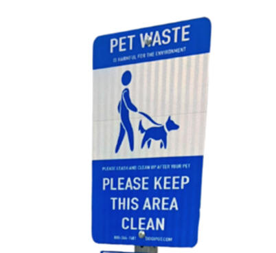 1003A-Blue-L Blue Pet Sign Galvanized 8' Telescopic Post Green Aluminum Junior Dispenser 2 Rolls Of Litter Bags (400 Bags) Blue Aluminum Trash Receptacle 1 Box Of Trash Liners Bags (50 Bags) A Set Of Keys (2) $470 Each
