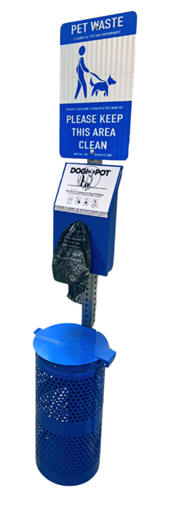 Blue: Pet Stations With Aluminum Trash Receptacles - Rolled Litter BagsChoose Your Pet Station With On-Leash Or Off-Leash Signage - Aluminum Trash Receptacle Stations Come With: A Pet Sign, Dog Poop Bag Dispenser, Set Of Keys, Trash Receptacle, 1 Box Of Trash Liners (50 Bags) And 2 Rolls Of DOGIPOT® Bags Or 2 Header Pak Cards (400 Bags) |